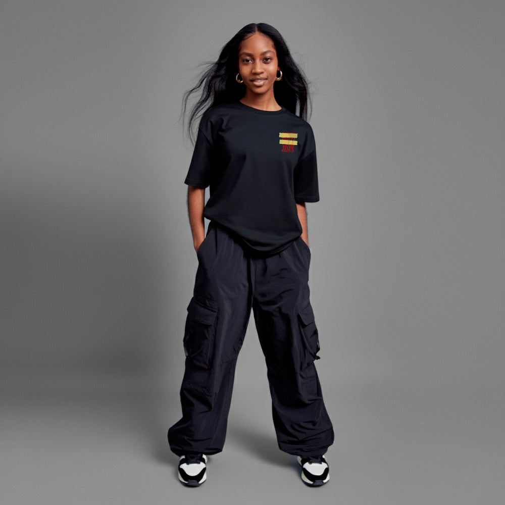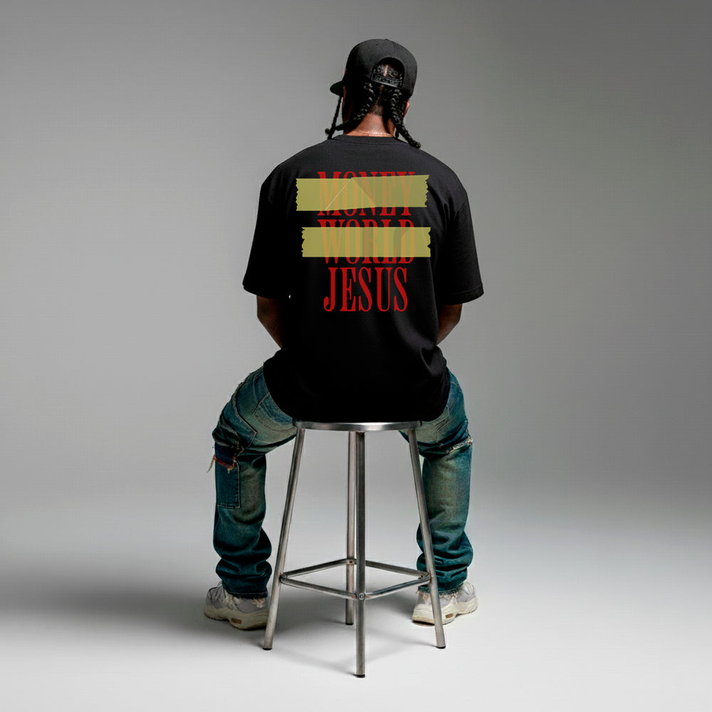 This tee is a declaration of priorities in a world that constantly pulls you toward everything but God. The crossed-out “Money” and “World” make it clear: you’ve made your choice. Jesus sits at the top! The only name that never fades, never folds, never fails. This design is for the ones who refuse to bow to culture, pressure, or distraction. The ones who know who they belong to and aren’t afraid to stand out.
